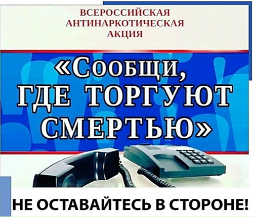 С 20 апреля по 1 мая 2026 г. I этап Всероссийской антинаркотической акции «Сообщи, где торгуют смертью»